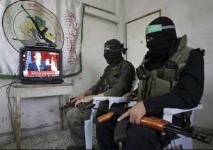 Les mains arrimées aux Kalachnikovs reposent sur les genoux des combattants et semblent prêtes à repartir au combat, à entraîner ces militants du Hamas vers un nouvel affrontement avec l’armée israélienne. Pourtant les yeux des soldats palestiniens, enfermés sous leurs cagoules, sont rivés à cette télé, captifs du nouvel hôte de la Maison blanche.
