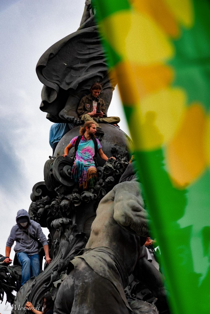 Sous les drapeaux originels se dessine une République de la contestation, le désaccord d’une politique intérieure comme extérieure, le désaveu des élites autoproclamées. Dans la rue se soulève, à travers les drapeaux, le mouvement des hommes et des femmes désireux de rappeler à la République ses obligations démocratiques, de convoquer cette France toujours en quête de sa propre exemplarité dans les grands moments de son histoire.