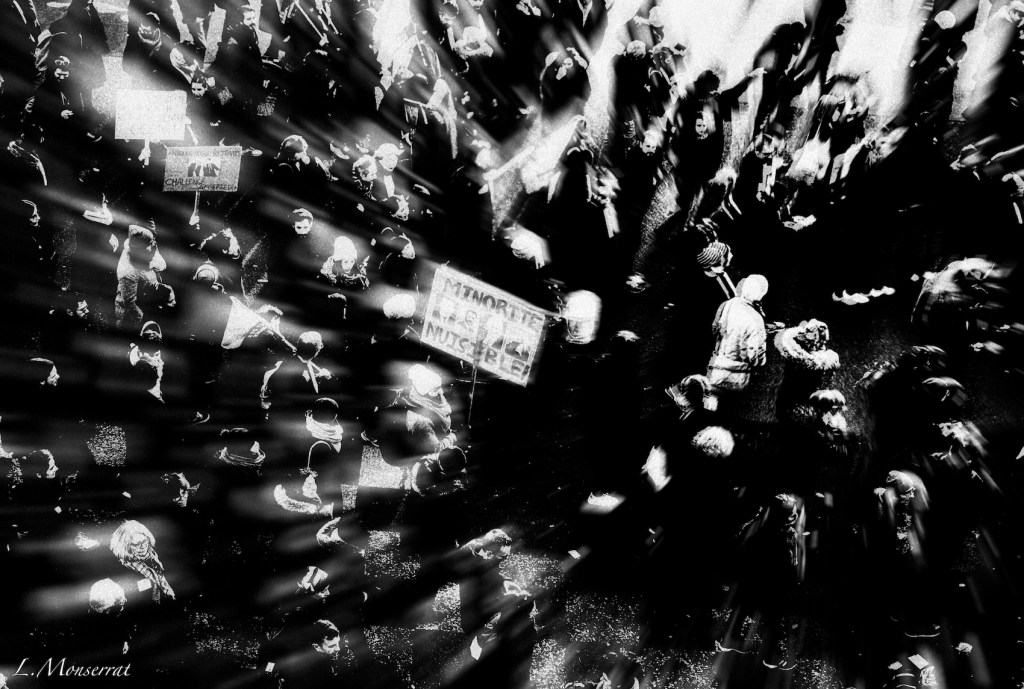 Cette série de photographies, issue de multiples rassemblements, s’inscrit dans la lignée esthétique du collectif Provoke : une approche brute, floue, qui saisit l’urgence et la colère. Elle documente la lutte viscérale des Français, leur refus obstiné de déserter le pavé ou de laisser s’éroder leurs « conquis » sociaux. C’est une œuvre de résistance, prise entre l’écran de fumée médiatique et la réalité des répressions brutales et des exactions policières commanditées par le pouvoir en place.